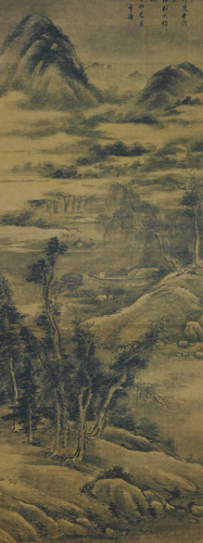 심사정 <강상야박도(江上夜泊圖)> 1747년 견본수묵 153.2x61cm 국립부여박물관