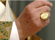 교황을 알현한 수많은 카톨릭 신자와 세계의 지도자들이 입을 맞춘 내력이 있는 이 반지에 대해 로마 바티칸교황청 대변인은 교황사임 이후 반지는 파쇄될 것같다고 밝혔다.