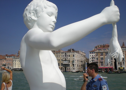 프랑수아 피노의 현대미술재단이 주문, 미국 작가 찰스 레이(Charles Ray)가 제작한 이 조각상은 2009년 6월9일 산 마르크 성당 앞 그랑 카날 입구에 설치된 이래 관광객들이 줄지어 사진을 찍는 명소 역할을 해왔다.