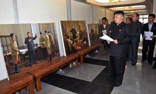 아트데일리가 14일자로 사이트에 오늘의 베스트 사진난에 소개한 사진은 김정은이 평양의 만수대창작사를 찾아가 승리조국해방전쟁기념관(Victorious Fatherland Liberation War Museum)에 걸릴 김일성에 관련된 초상화 작업을 둘러보는 모습이다.