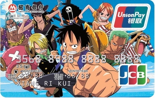 일본의 인기만화 one piece 등장인물 그린 신용카드 중국에서 발행