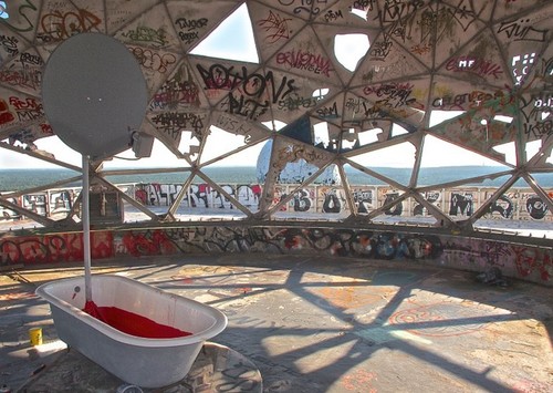 인스털레이션 작가인 더크 크리흐팅은 감청 시설이 들어있던 둥근 돔 아래의 테라스에 욕조를 가져다 놓고 붉은 잉크를 풀어놓아 이른바 ‘핏빛 욕조’를 선보였다. 작가은 이같은 도청 시설이 무의미하다는 것을 공격적으로 보여주고 싶었다‘고 말하고 있다.