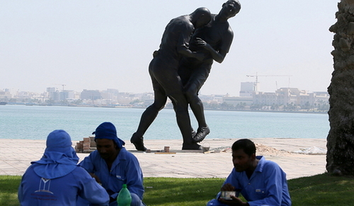 높이 5미터가 넘는 거대한 이 청동상은 알제리 출신의 프랑스 조각가 아델 압데세메드의 작품으로 카타르가 2022년 월드컵 준비 계획의 일환으로 구입해 10월4일에 설치를 마쳤다.