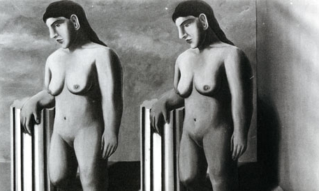 현재 사진으로만 전하는 마그리트의 작품은 <마법에 걸린 포즈>로 두 명의 누드 여인이 나란히 그려진 그림이다.