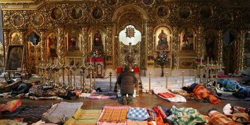키에프 중심지에 있는 우크라인스키 돔의 바로그양식 교회는 반정부 데모대가 임시병원으로 사용하고 있는데 같은 건물 4층에 있는 키에프 역사박물관의 내부가 엉망이 되었다는 페이스북 내용이 전해졌기 때문이다.
