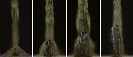 4개의 수직 컬러 프라스마 스크린으로 구성된 이 작업은 그의 동료이자 작업 파트너인 키라 페로브가 마치 폭포 물을 맞듯이 하늘에서 쏟아지는 먼지를 뒤집어쓰는 장면으로 구성돼 있다. 먼지는 세상을 구성하는 원소인 흙을 의미한다.