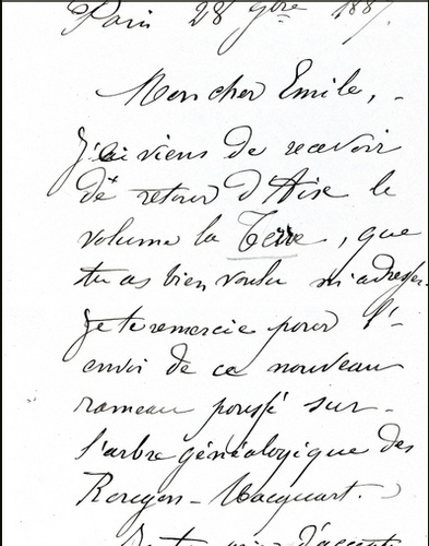 프랑스의 폴 세잔협회가 홈페이지에 새로 올린 자료는 1887년11월28일자의 편지로 폴 세잔이 에밀 졸라에게 보낸 것이다.