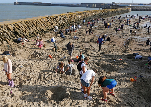 해변에서 금괴를 찾는 예술행사가 영국남부 폴크스톤에서 열려 대성황을 이뤘다.