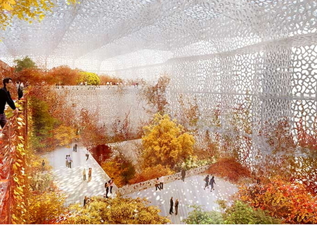 설계자는 프랑스출신의 세계적 건축가 장 누벨. 지난 18일 장 누벨이 베이징에서 기자들과 중국, 프랑스 정치인들 앞에서 공개한 설계안에 따르면 새 미술관의 중심 공간인 여름홀(Summer Hall)에는 대형 실내정원이 들어서며 자연채광을 받아들일 수 있는 오픈 천정으로 꾸며질 예정이다.
