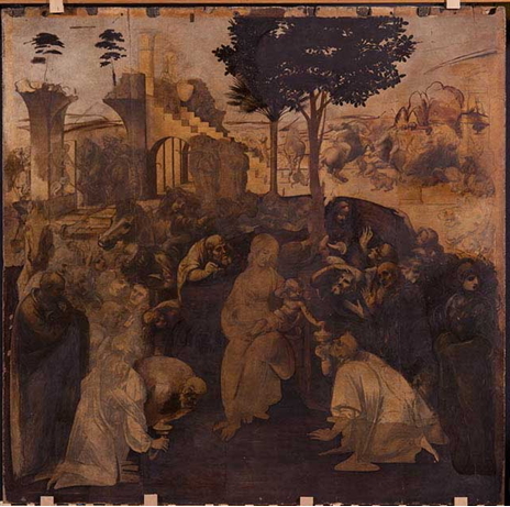 세로 246cm에 가로 243cm의 대작인 <동방박사의 경배>는 피렌체 인근 스코페토의 산 도나토 성당을 위해 1481년 제작에 착수했으나 그가 밀라노로 가는 바람에 미완성으로 남게 됐다.