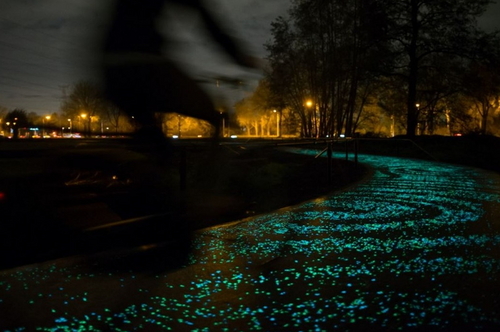 <별이 빛나는 밤>은 소용돌이 치는 듯한 별빛 표현으로 유명한데 지난주 공개된 아인트호벤 인근의 자전거 도로는 태양광 전지를 이용해 밤에 되면 도로 전체가 환상적인 은하수 장면을 그려낸다는 것.