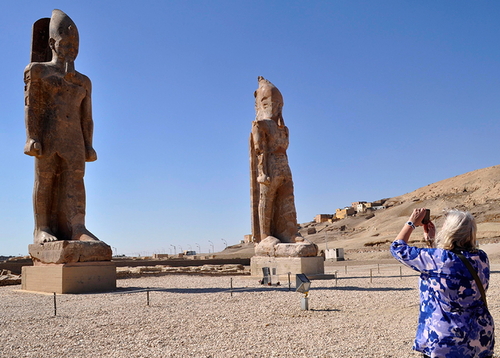 이집트 아멘호텝 3세의 거대한 석상이 나일강변에 새로 그 모습을 드러냈다.