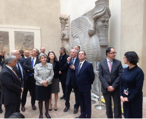 프랑스의 올랑드 대통령은 18일 루브르의 메소포타미아 전시실을 방문해 루브르에게 이라크에 IS극단주의자들에 의해 파괴된 이라크 유적을 조사할 특별팀을 파견할 것을 주문했다.