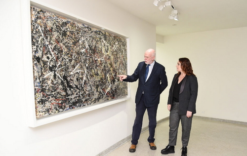 뉴욕 구겐하임미술관은 1937년에 재단이 설립되고 이어 2년뒤인 1939년에 뉴욕 맨하탄 이스트 54번가에 미술관이 개관했다.(사진=AFP. 잭슨 폴록의 작품을 보고 있는 구겐하임미술관 리처드 암스트롱 관장과 솔로몬구겐하임 재단의 프란체스카 라바자 이사)