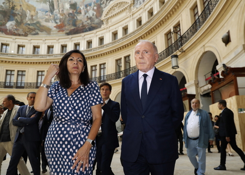 AFP에 따르면 억만장자로서 14억 달러어치의 미술품을 소장한 것으로 전하는 피노회장(사진 오른쪽)은 26일 미술관으로 개조될 파리의 옛 증권거래소 건물을 앤 히달고 파리시장(사진 왼쪽)과 둘러봤다고.