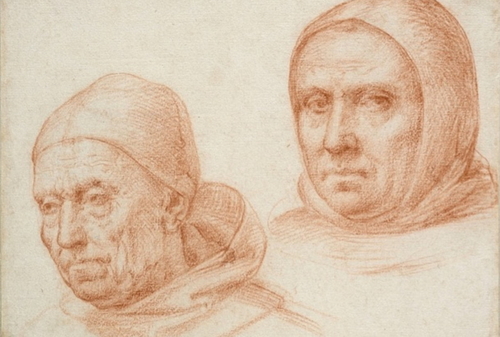 대표작 중 하나인 미켈란젤로의 드로잉은 요크서의 한 성에서 발견된 뒤 2001년 소더비에 나온 것을 600만달러를 주고 낙찰받은 것으로 전한다.(사진은 프라 바르톨로메오가 1511년경에 그린 <두 도미니크회 수사의 습작>)