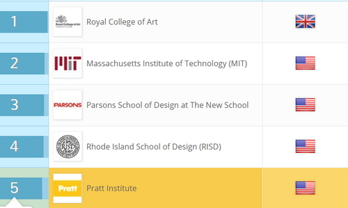 미국대학은 2위에서 5위까지를 독차지했는데 4위는 로드아일랜드 디자인 스쿨, 5위는 프랫 인스티튜트가 각각 올랐다.
