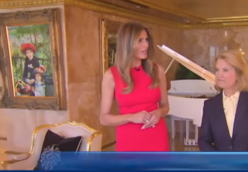 그런데 지난해 대통령에 당선되고 난 직후에 CBS의 60미니츠에 소개된 트럼프타워에 여전히 그 그림이 걸려있는 것을 보았다고 베니티 페어는 전했다.(사진은 멜리니아가 60미니츠에 인터뷰하는 모습으로 뒤편에 르노와르 그림이 걸려 있다)