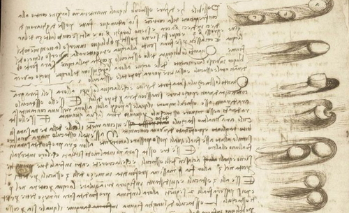 일명 코덱스 레스터로 불리는 이 노트는 18쪽의 종이를 반으로 접어 앞뒤로 다빈치가 과학적 내용을 메모한 원고이다.