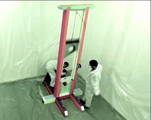 르 주르날 데 자르의 보도에 따르면 이만 르제, 루벤 마테른이라는 두 학생은 그들의 홈페이지에, 한 사람은 단두대의 날을 작동시키고 있고 다른 한 사람은 어린 양을 붙잡고 있는 장면의 비디오를 올려놓았다. 또 유튜브에는 단두대 날 밑에 양의 목을 밀어 넣는 모습을 내보냈다. 그런 다음 네티즌들에게 '이 양은 죽어야 합니까 ?' 라는 질문으로 투표할 것을 요구한 것. 현재로서는 '아니오'가 대세라고 한다.