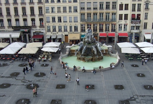 뷔렌은 당시 지방 건축가인 크리스티앙 드르베와 함께 화강암으로 된 14개의 기둥에 69개 샘물이 나오는 거대한 산을 연상시키는 분수 작업을 설치했는데 이후 광장에 트럭이 출입하면서 화강암 기초를 흔들어 부식이 시작됐다는 것.
