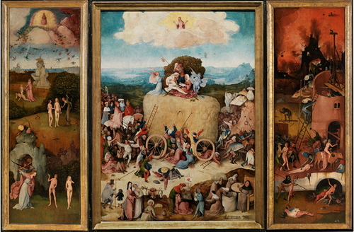 3폭 제단화로 그려진 <건초마차>는 1570년 당시 네덜란드를 통치하던 필리페 2세가 구입해 마드리드로 가져가면서 지금까지 마드리드 프라도미술관에서 <쾌락의 정원>과 함께 보슈의 대표작으로 소개돼왔다.