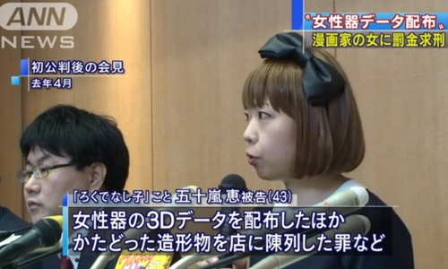 여성기 3D 데이터 보낸 아티스트에 日검찰 80만엔 벌금 구형