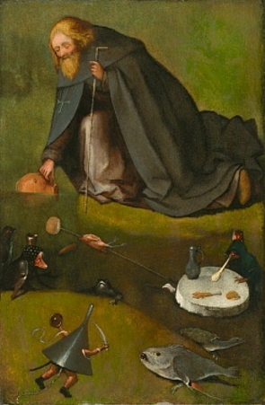 성 안토니오가 광야에서 물을 뜨고 있는 장면을 그린 이 그림은 1930년대 구입된 이래 보쉬의 고향인 네덜란드 남주 스헤르토헨보스에서 활동하던 그의 후계자 중 한사람이 그린 것으로 여겨져왔다.