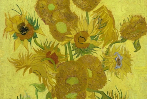 <해바라기>는 고흐가 귀를 자르기 한 달 전에 아를르에서 그린 것으로 그림 속에는 노란 벽지를 배경으로 15송이의 해바라기가 그려져 있다.