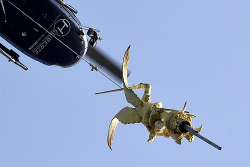 몽생미셀의 대천사 가브리엘 수리위해 헬리콥터로 이송