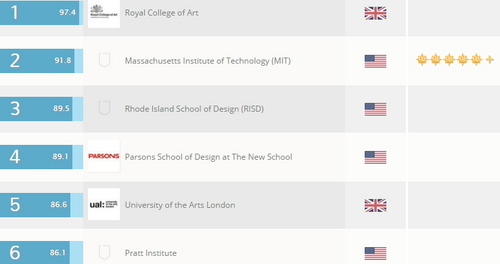 2위와 3위는 미국의 MIT 공대와 뉴욕 로드아일랜드 디자인 스쿨이 꼽혔다.