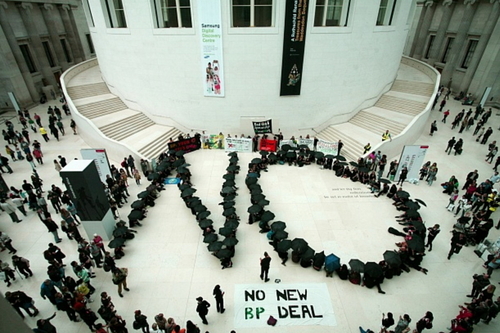 후원 대상은 영국박물관, 국립초상화미술관, 로열 오페라 하우스, 로열세익스피어극단 등이다.(사진은 지난해 가을 영국박물관 내에서 열린 환경단체연합의 시위 장면)