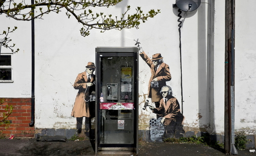 뱅크시는 미국의 전직 NSA요원 에드워드 스노든이 세계적인 도청사실을 공개한 직후 이곳에 공중전화 부스를 둘러싸고 3명의 스파이가 감청활동을 하는 모습이 그렸다.