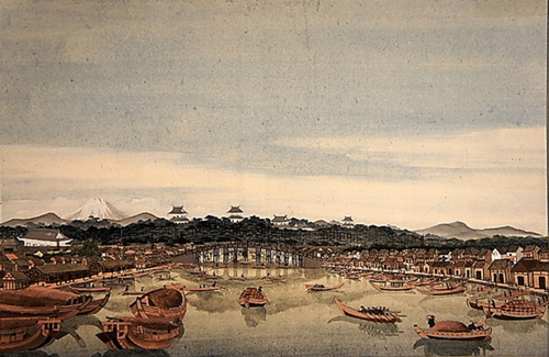 그림 내용은 멀리 후지산이 보이는 니혼바시(日本橋)를 비롯해 눈 내린 조조지(增上寺), 에도성 등이다.(사진=아사히 신문)