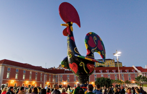 10미터 높이의 닭조각 <팝 갈로>는 포르투갈 북쪽 바르셀로스 시의 상징을 표현한 것.