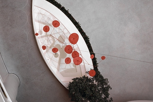 구겐하임 명물중 하나인 로톤다홀 분수위의 칼더 조각이 수복을 마치고 2월에 재설치된다.