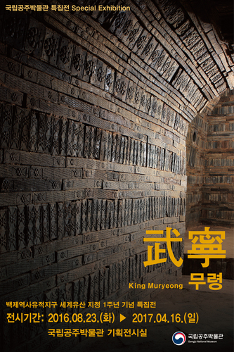 특집전 ‘무령’은 백제역사문화지구 세계문화유산 지정 1주년을 맞아 무령왕의 일생과 업적, 제사와 묘지석, 벽돌무덤과 목관, 왕과 왕비의 부장품, 무령왕릉의 발굴이라는 5개의 주제로 구성되며, 국보 제154호 금제관식, 국보 제156호 무령왕 귀걸이, 국보 제158호 금제귀걸이, 국보 제159호 금제뒤꽂이, 국보 제160호 다리작 팔찌, 국보 제161호 청동...