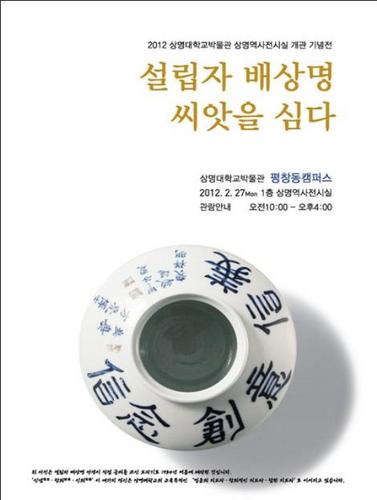 2011년 가을부터 정리한 본교 계당기념관에 수장되어 있는 미등록 유물들 중 설립자 배상명 선생의 친필 기록물과 보도자료ㆍ사진 등을전시