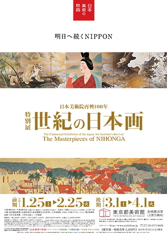 올해 일본미술원 설립 100주년을 맞아 가노 호가이(狩野芳崖)、요코야마 다이칸(横山大観)、고바야시 고케이(小林古径)、야스타 유키히코(安田靫彦)、히라야마 이쿠오(平山郁夫) 등 근대일본화 거장의 대표작 120점 소개.
