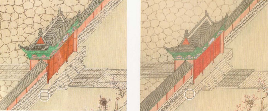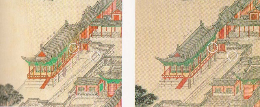 작품을 살펴보면 고려대박물관 소장본과 동아대박물관 소장본은 같은 곳을 그린 그림인 만큼 구도와 배치, 건축, 조경, 화면의 규격까지 유사하여 동일한 시기에 같은 화본을 바탕으로 제작된 것으로 보이지만 채색이나 세부묘사에서는 차이를 보인다.