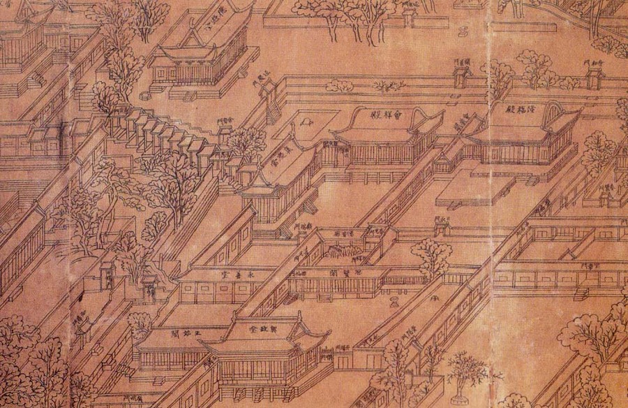 <서궐도안>부분, 종이에 수묵, 127.3cmx401.8cm, 19세기, 고려대학교박물관