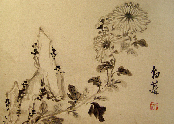 강세황, <괴석감국도 怪石甘菊圖>, 《豹玄兩先生聯畵帖》 중에서, 1761년, 종이에 수묵, 38.4×27.4cm, 간송미술관