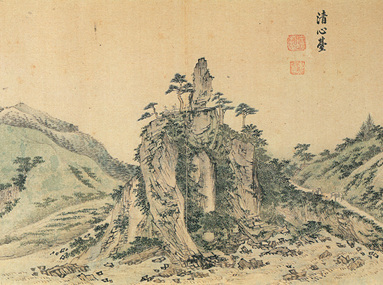 <청심대淸心臺> ≪금강사군첩≫ 1788년(44세) 견본담채, 30.4x43.7cm, 개인