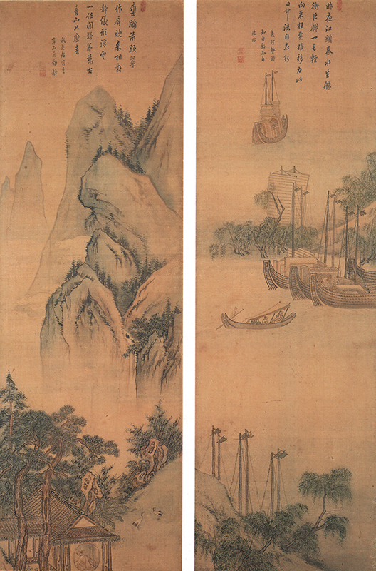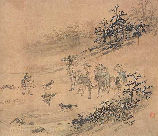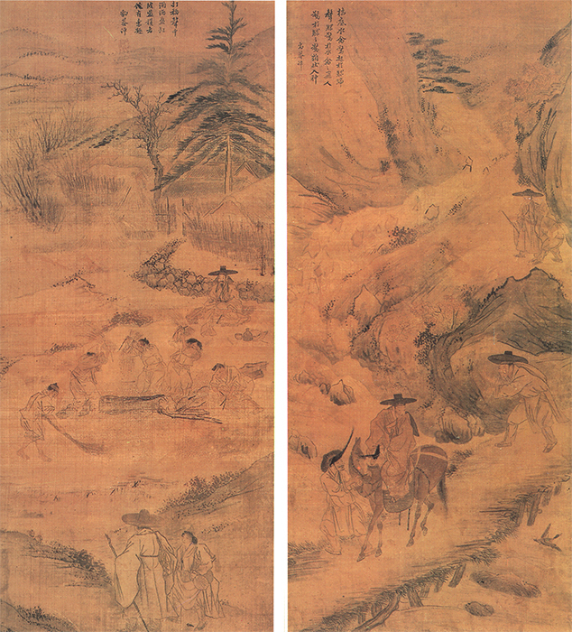 <타도낙취> <과교경객> ≪행려풍속도≫ 1778년(34세) 견본담채, 각 90.9x42.7cm, 국립중앙박물관