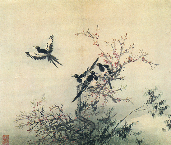 18세기는 화조화의 시대라고 할 만큼 많은 화가가 이를 그렸고 또 수요도 많았다. 단원 화조화도 인기가 높았다. 인기의 비결은 역시 화폭 전체에 흘러넘치는 시정(詩情)이었다. <춘작보희(春鵲報喜)>는 대나무 가지와 붉은 매화나무 그리고 까치가 모두 중앙에 몰려 있는 중앙집중 구도를 보인다. 이 역시 그가 자주 구사한 구도법이다. 단원의 화조는 시골집에서 흔히 볼 수 있는 평범한 자연을 배경으로 한 데서 더욱 시적 정취가 뛰어나다. <백로횡답(白鷺橫畓)>은 이른 여름 푸르게 펼쳐져 있는 무논과 백로가 주인공이다. 아무도 없는 들판의 정적을 깨고 백로 한 쌍이 날아가고 있다. 무논의 또 다른 한 마리는 자세히 보면 물고기 한 마리를 입에 물고 있다. 디테일을 빨리 ‘척척’ 그리는 것도 그만의 특기이다. 이 그림 역시 조선적 서정의 세계가 가장 잘 드러난 명품 중 하나다.